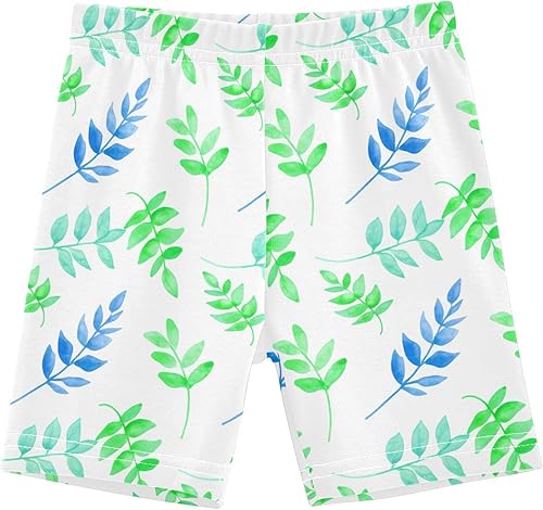 Leaves White Girls Bike Shorts Toddler Soft Cotton Under Dress Cartwheel Shorts