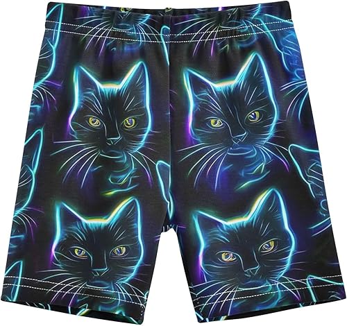 Girls Neon Cats Cotton Bike Shorts for Under Dresses Summer Dance Cartwheel Outfits, 4T