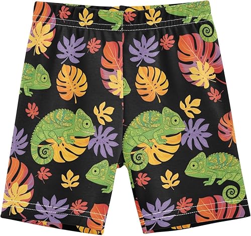 Chameleon Leaf Black Girls Bike Shorts Toddler Soft Cotton Under Dress Cartwheel Shorts