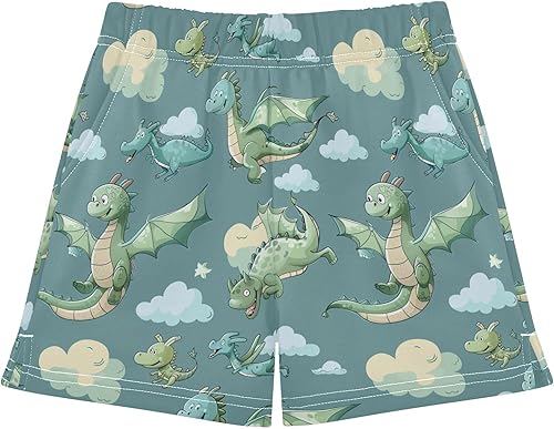 Girls Shorts Summer Cartoon Dragon Cloud Athletic Shorts with Stretchy Elastic Waist Beach Shorts XS-XL