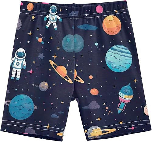 CHIFIGNO Girl's Bike Shorts Breathable Cartwheel Shorts Kids Under Dress Biker Short Cartoon Astronaut Dark Blue