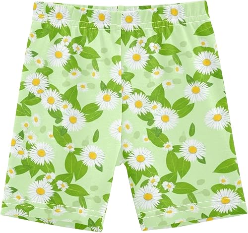 Girls Cotton Bike Shorts White Daisies Floral Toddler Summer Clothes Cartwheel Biker Short, 4T