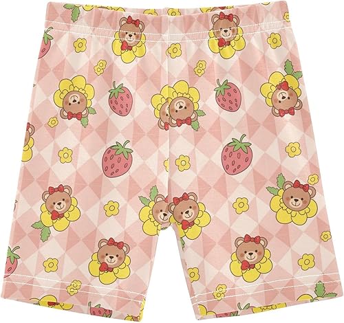 Strawberry Bear Pink Girls Bike Shorts Toddler Soft Cotton Active Under Dress Shorts