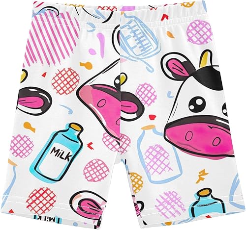 Adorable Cow Pink Girls Bike Shorts Toddler Dance Cartwheel Shorts Cotton Summer Outfits, 4T
