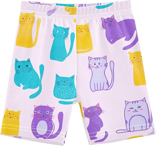 Girls Cotton Biker Shorts Cute Cats Light Pink Toddler Under Dress Dance Cartwheel Shorts, 4T
