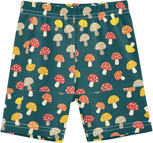 Mushroom Yellow Red Girls Bike Shorts Toddler Soft Cotton Under Dress Dance Shorts