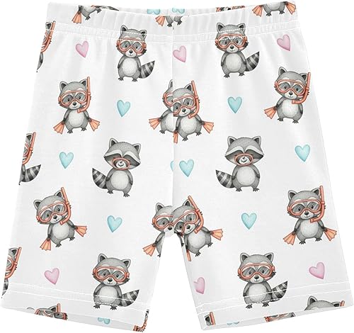 Gray Raccoon Hearts Girls Bike Shorts Toddler Soft Cotton Under Dress Dance Shorts