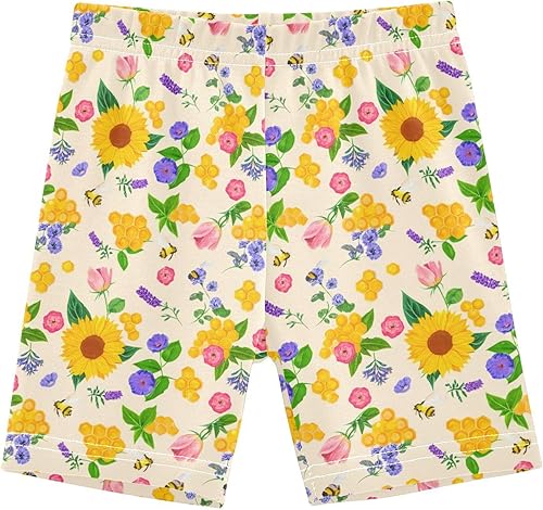 Sunflowers Beige Girls Bike Shorts Toddler Soft Cotton Active Biker Shorts