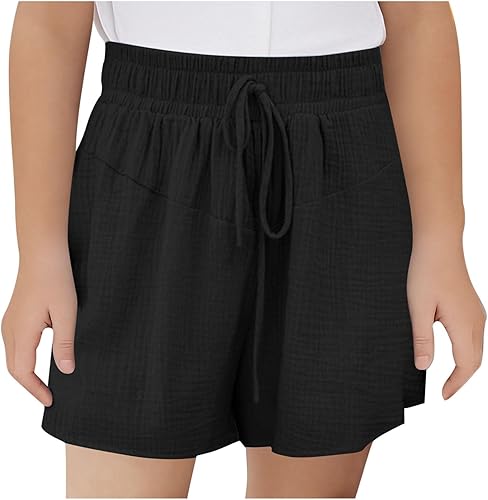 Girls Cotton Linen Shorts Kid Summer Casual Elastic Waist Wide Leg Shorts with Drawstring Kids Lightweight Baggy Beach Bottom