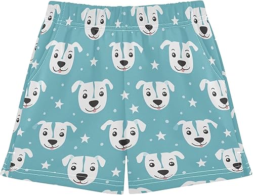Girls Shorts Summer Cartoon Dog Face Athletic Shorts with Stretchy Elastic Waist Beach Shorts XS-XL