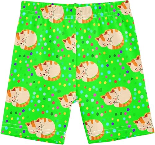 Cat Dots Girls Bike Shorts Toddler Dance Athletic Shorts Under Dress Clothes for Girls 4-10,4T