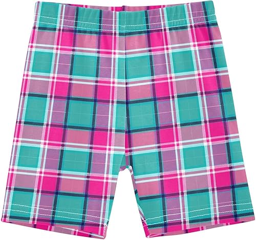 Plaid Fabric Teal Girls Bike Shorts Toddler Dance Athletic Shorts Under Dress Clothes for Summer,4T