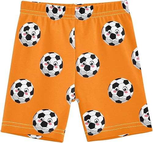 Cartoon Soccer Ball Orange Girls Bike Shorts Toddler Dance Athletic Shorts Under Dress Clothes for 4-10 Years,4T