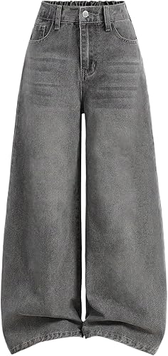 Floerns Girl's Y2k Baggy Jeans Elastic Waist Streetwear Wide Leg Denim Pants