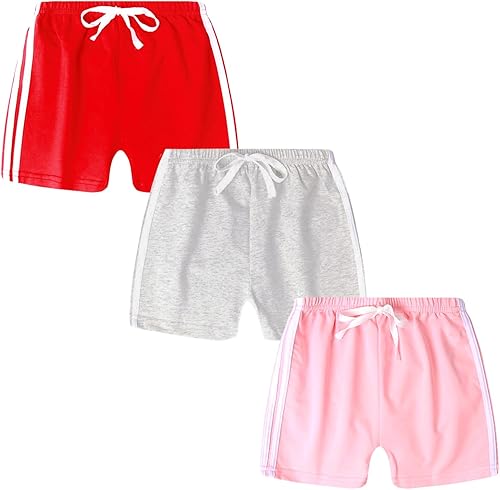 Toddler Boys Girls Shorts 3 Pack Kids Active Running Athletic Shorts Summer Sport Jogger Short Pants with Stripe