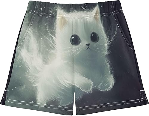 Girls Shorts Summer Ghost Cat Kitten Animal Athletic Shorts with Stretchy Elastic Waist Beach Shorts XS-XL