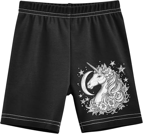 Unicorn Moon Stars Black Girls Bike Shorts Toddler Soft Cotton Cartwheel Under Dress Dance Shorts
