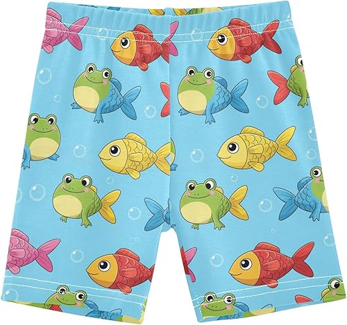 Frog Fish Blue Girls Bike Shorts Toddler Soft Cotton Cartwheel Under Dress Dance Shorts