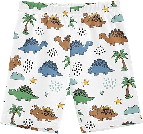 Dinosaur Tree White Girls Bike Shorts Toddler Soft Cotton Under Dress Cartwheel Shorts