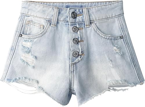 YMI Jeans Girls Small Floral Print Fray Hem Shorts, Light Blue, 12