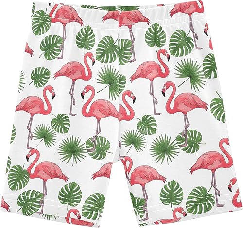 Flamingo Green Palm Leaves Girls Bike Shorts Toddler Soft Cotton Cartwheel Under Dress Dance Shorts