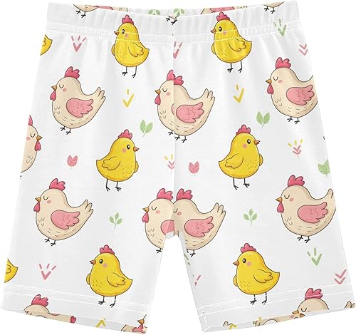 Rooster Chicken White Girls Bike Shorts Toddler Soft Cotton Active Under Dress Shorts
