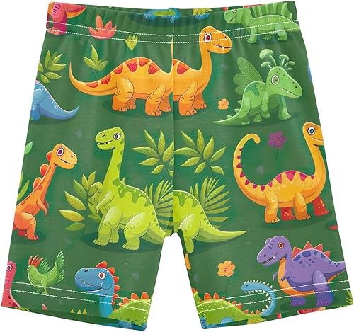 CHIFIGNO Girls' Cartwheel Shorts Cotton Bike Shorts Kids Under Dress Biker Short Cute Cartoon Dinosaur Green