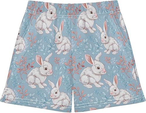 Girls Shorts Summer Rabbit Bunny Animal Cute Athletic Shorts with Stretchy Elastic Waist Beach Shorts XS-XL