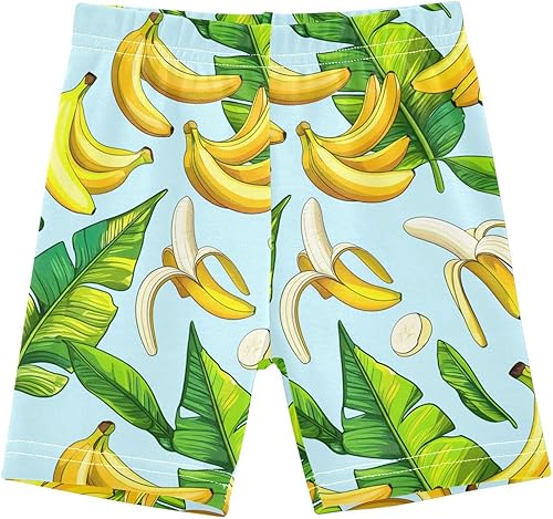 Banana Leaves Blue Girls Bike Shorts Toddler Dance Athletic Shorts Under Dress Clothes for Summer,4T