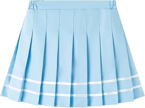 easyforever Girls Striped Pleated Skirt Scooter Skater Tennis School Uniform A-line Mini Skirt Japanese Skort Skirt