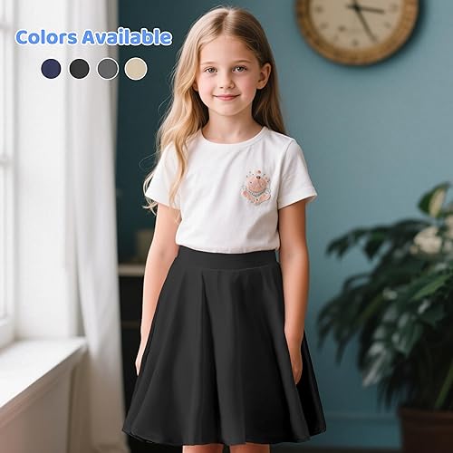 Girls Skorts with Built-in Shorts Athletic Skorts for Girls A Line Knee Length Uniform Skirt Size 6-14 for School Sports Black 12 Years