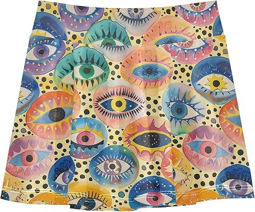 Evil Eyes Ball Rainbow Leopard Printed Tennis Skirt for Girls with Built in Shorts Flowy Pleated Skirt for Kids 3-4T