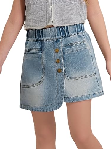 easyforever Kids Girls Half Panel Retro Denim Skirts Skorts Summer Casual Elastic Waist A-line Jeans Culottes Skorts
