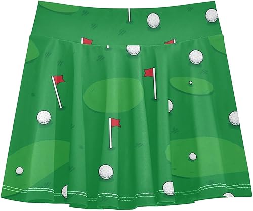 JUNZAN Cartoon Golf Green Athletic Skorts for Girls with Shorts Flowy Sports Skirts for Kids 3-4T