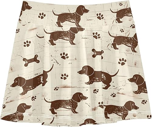 Cartoon Cute Dachshund Dog Paws Girls Tennis Skirt with Built-in Shorts Flowy Youth Pleated Skirt 3-4T