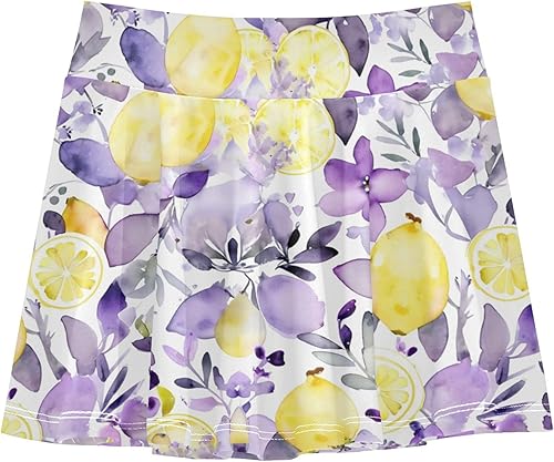 JUNZAN Lavender Lemons French Purple Love Floral Girls Athletic Skirt with Shorts Flowy Pleated Skirt Kids 3-4T