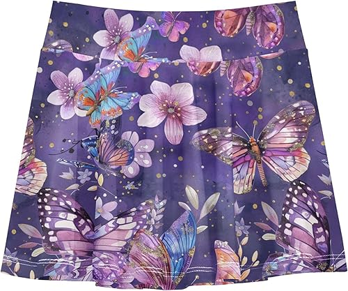 Glitter Butterflies and Flowers Purple Athletic Skorts for Girls with Built in Shorts Flowy Cheer Skirt Kids 3-4T