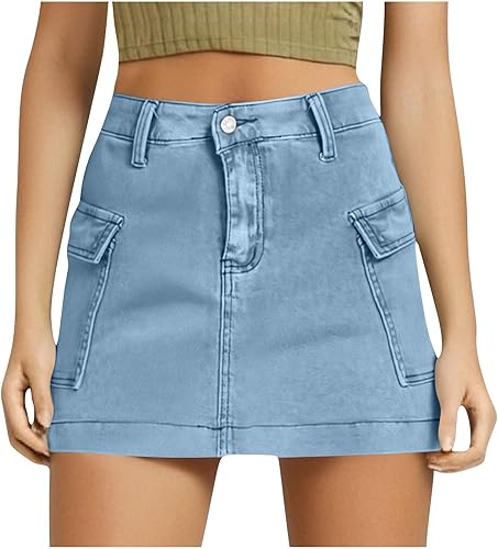 Stretch Jean Skirts for Women High Waist Stretchy Casual Mini Denim Skirts Girls Teens Dressy Cute Slim Fit Outfits