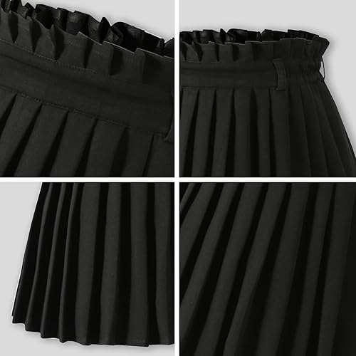 ACSUSS Girls Teens Pleated Pull-on Scooter Mini Skirt Short Elastic Waist School Uniform Skorts with Undershorts