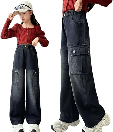 Cargo Pants for Girls Jeans Wide Leg Loose Fit Casual Trousers for Kids Streetwear Comfortable for School Play