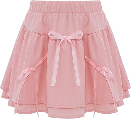 Kids Girls High Waist Mini Ruffle Tiered Skirt Casual Cute Bow A Line Pleated Skorts with Shorts