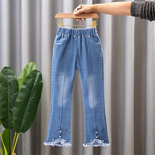 Girls Flare Pants Bell-Bottom Jeans Trousers Pants Casual Denim Elastic Waist Pants with Pockets Outdoor