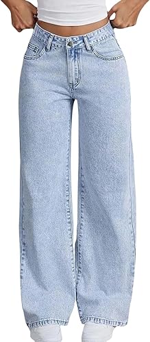 YiZYiF Casual Bell Bottoms for Girls Loose Fit Wide Leg Jeans Fashion Washed Trousers Baggy Denim Pants