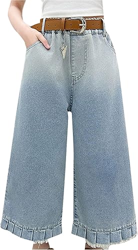Girls Stretch Flare Leg Jeans Stretch Comfy Elastic High Waisted Streetwear Denim Pants with Pockets for 5-15 Years
