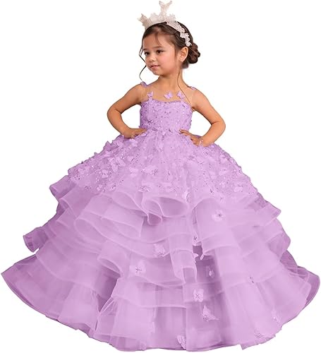 Flower Girl Dress Lace Butterfly Tulle Appliques Flower Girl Dresses Princess Pageant Dresses for Girls Ball Gown