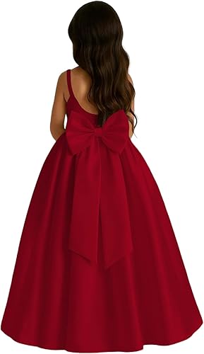 Glossy Satin Flower Girl Dress Spaghetti Strap Princess Ball Gown Elegant Backless Party Long Dresses UJR098
