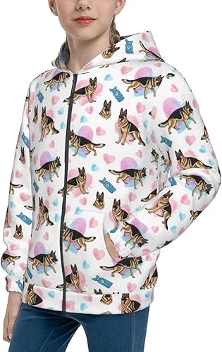 Girls Zip Up Hoodie Long Sleeve Sweatshirt Kids Hooded Pullover Fall Outfit Sport Pullover Coat with Pocket