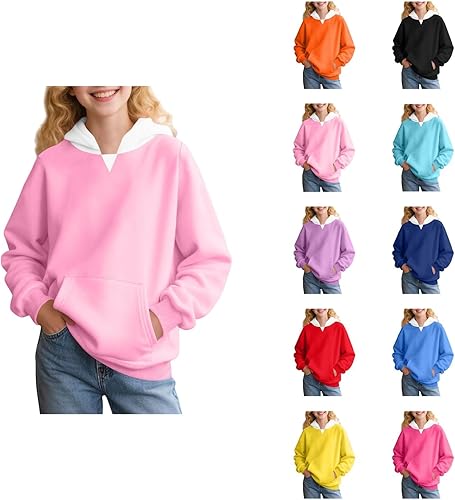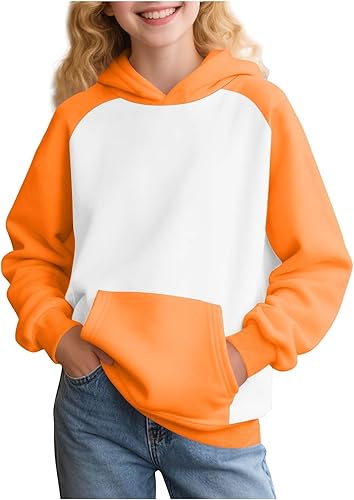 Hoodies for Teen Girls Casual Long Sleeve Hooded Sweatshirts Color Block Preppy Cute Pullover Tops for Teens with Pockets
