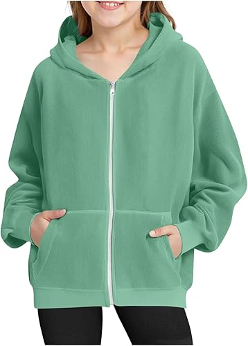 Hoodies for Teen Girls Youth Solid Classic Long Sleeve Zipper Hooded for Kids Oversized Sweatshirts Unisex