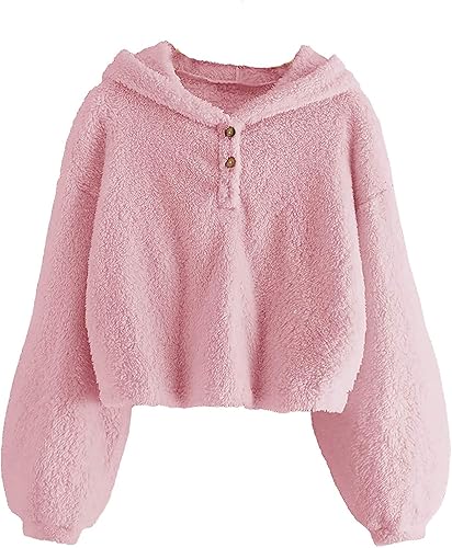 Girls Fuzzy Fleece Pullover Hoodies Fashion Sweatshirt Casual Sherpa Winter Warm Tops Outwear Coat with Pockets